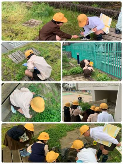 3年生が、運動場の周りやビオトープで、植物を観察していました。