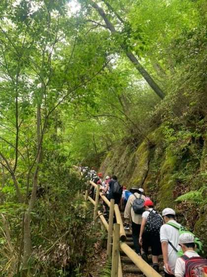 緑の中のハイキングを楽しんでいます。