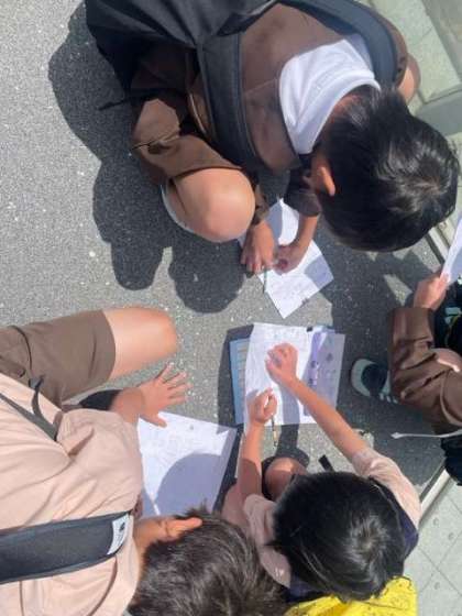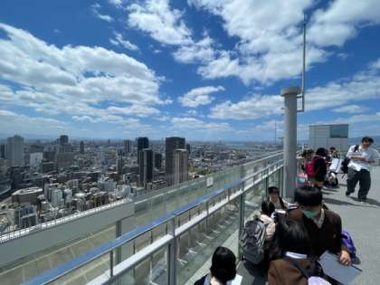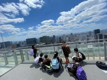 39階の空中庭園で大阪市の様子を一望しました。東西南北の様子をワークシートにかきました。
