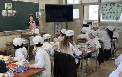 3年生で習う茶摘みの歌を今日のまっ茶ういろうに合わせて給食委員会が放送で歌ってくれました。立春から数えて八十八夜の今頃は、茶摘みと田植えの時期になります。季節を感じることができるのも和菓子の良いところです。