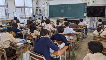 社会科のテストに取り組んでいました。