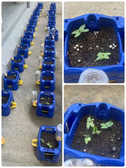 1年生が植えたあさがおの芽が出ました。