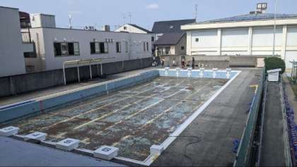 今日は、プール清掃員さんに来ていただき、学校のプールをキレイにしていただきました♪
