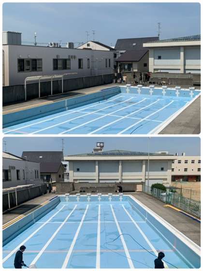 ピカピカのプールで泳ぐのが楽しみですね。