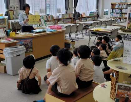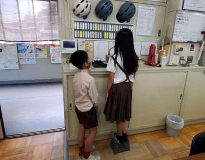 図書委員の児童は放送をしてから、図書館開放を行います。