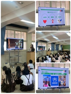 今日は、6年生が講師の先生から、難民とは何か?難民になったらどうなるのか?や服のプロジェクトとはどのようなことなのかを教えてもらいました。