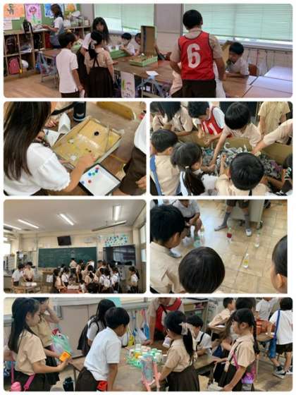 たてわり班のグループで協力して仲良くお店を回って楽しみました。