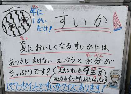 今日は、チキンパエリア、ウインナーとキャベツのスープ、スイカでした。