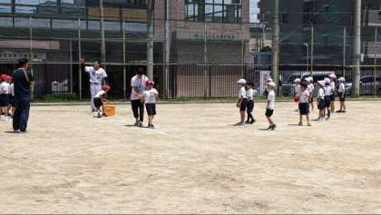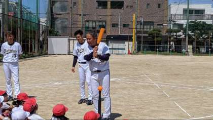 オリックスからコーチの方に来ていただき、ティーボールについて教えていただきました。