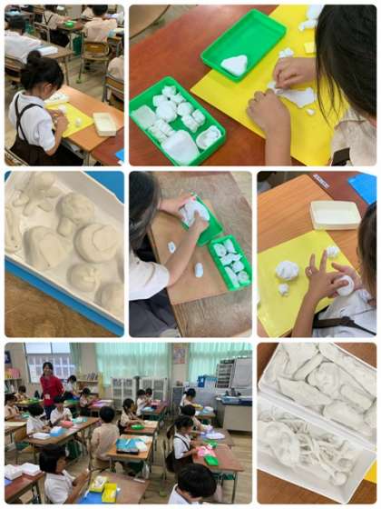 1年生が粘土でお弁当を作っていました。