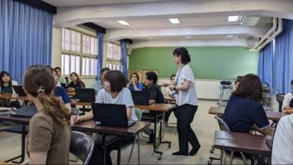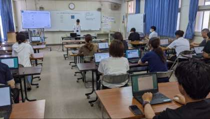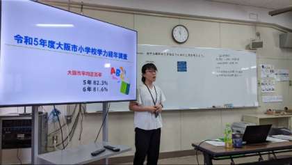 教育委員会より英語グループの方に来ていただき、より良い英語学習の進め方について、実践的に講義を受けました。