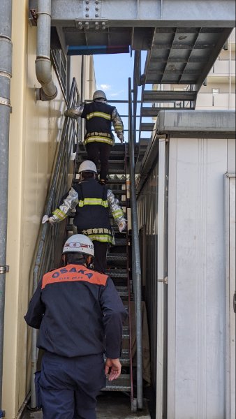救助者を助けるために階段を走ってのぼる訓練や