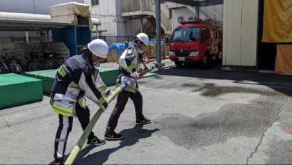 放水訓練に取り組んでいました。