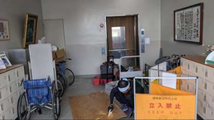 学校が始まってからも東側のトイレはまだ工事が続いています。