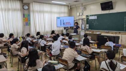 算数の学習では、長さの単位についてデジタル教科書を使って学習を進めていました。