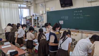 自然体験学習に向けての学習では、グループに分かれて話し合いをしたり、先生の話をよく聞いたりしていました。
