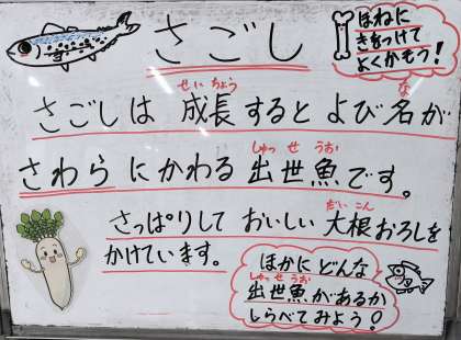 今日は、さごしのおろしじょうゆかけ、含め煮、牛ひじきそぼろ、ご飯、牛乳でした。