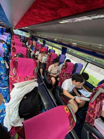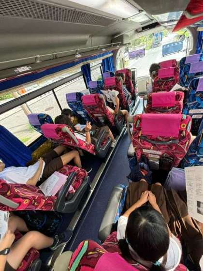 自然体験学習5年バスの中