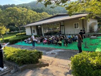 筏体験がおわり、宿舎へ入りました。すぐに避難訓練を行いました。