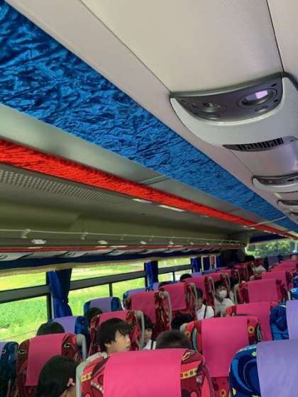 子どもたちはまだまだ元気なようで、バスの車内ではカラオケ大会が始まりました。