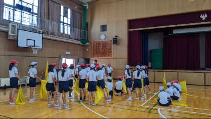 並び方を決め、フラッグの練習に取り組んでいました。