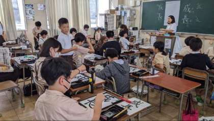 とめ・はね・はらいに気を付けて、毛筆の学習に取り組んでいました。