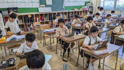 タブレット端末を使って、学習に取り組んでいました。