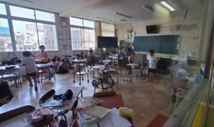 実際の放送を聞いて、子どもたちは、すぐに教室に避難をしました。