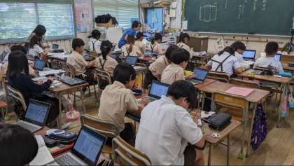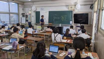 学習者用端末を使って学習していました。