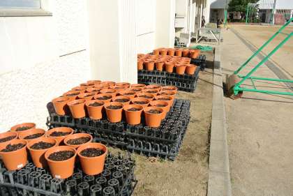 今年は植込みの時期が少し早かったため、残念ながら入学式には咲き終わっていましたので、今年はこの時期に植え付けをしてくださいました。