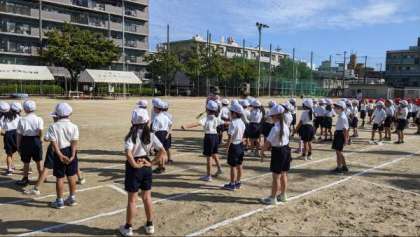玉入れの入場の仕方の練習に取り組んでいました。