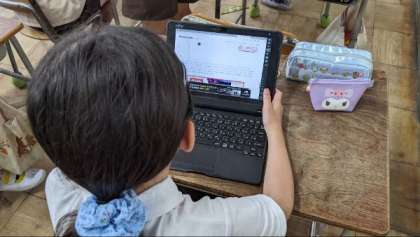 タブレット端末を使っての学習、算数「100マス計算」、道徳の学習をしていました。