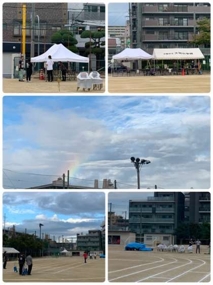 ちょうど準備が終わった頃、空に虹がかかっていました。