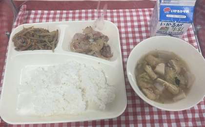今日は鶏肉の梅風味焼き、うすくず汁、きんぴらごぼう、ご飯、牛乳でした。今日でチャレンジ!食品ロスゼロクイズは終了です。これからもモッタイナイの気持ちを大切にと呼びかけました。