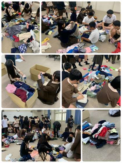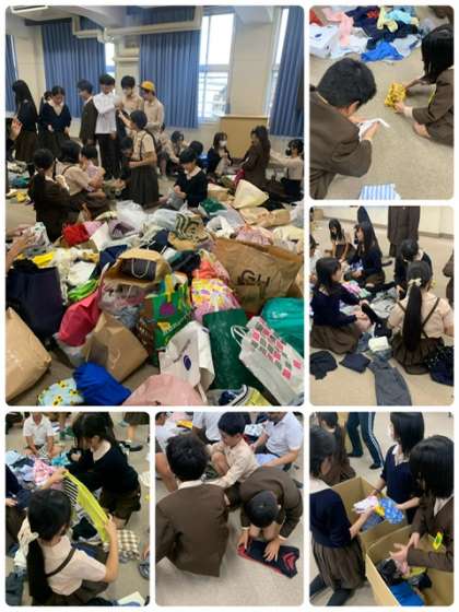 6年生みんなで頑張っても1時間では終わらないくらい、たくさんの服がありました。