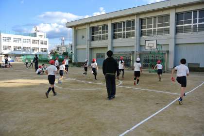 今日は穏やかな晴天でしたので、外で活動しているバスケットボールクラブの子どもたちも楽しそうにゲームをしていました。
