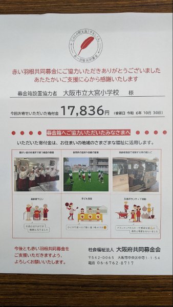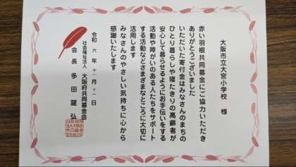 旭区社会福祉協議会から赤い羽根共同募金に対する感謝状を持ってきていただきました。