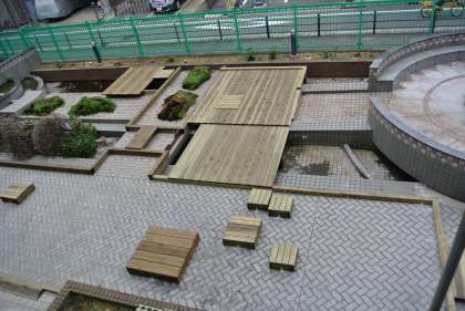 ビオトープ工事の第一期工事のウッドデッキが完成しました。