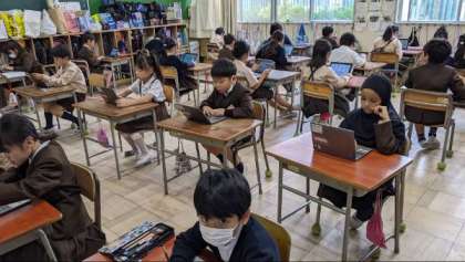 国語「テスト」終わったら、タブレット端末を使って学習していました。