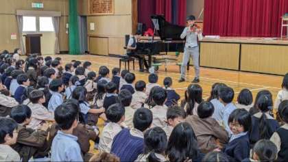 東京小金井市観光大使を務めておられる「Everly(エバリー)」さんが本校の児童のためにミニコンサートを開いてくださりました。