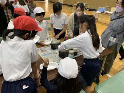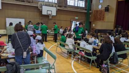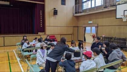子ども、保護者、PTA、教職員、みんなで鍋を囲んで