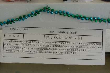 いきいき活動では制作活動も行っていて、年に一度いきいき活動全体の作品展に出展します。今年はピンポン玉を使ったかわいい人形を作りました。一つ一つが個性的な顔立ちをしています。