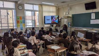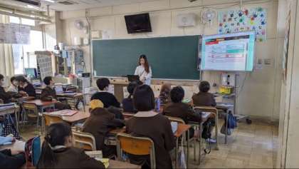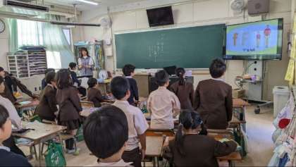 体を使って、アルファベットの形を意識したり、英語の動画を見てどんなものが出てきたのか答えたりしていました。