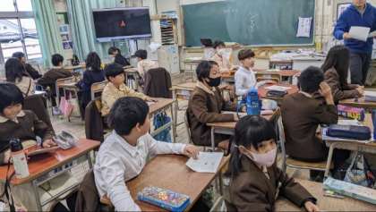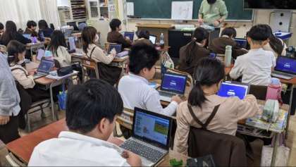 社会「タブレット端末を使って」タブレット端末を使って、問題の復習をしていました。