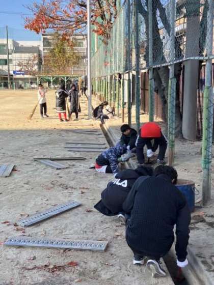 第二グラウンドの溝の清掃や落ち葉を片づけたりしてくださりました。
