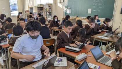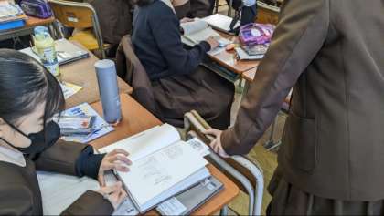 「平和学習」グループで協力して、平和学習についてまとめていました。