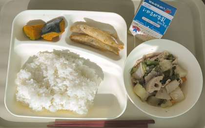 今日は、きびなごてんぷら、含め煮、かぼちゃの甘みつかけ、ご飯、牛乳でした。