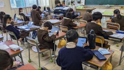 「タブレット端末を使って」2学期の復習に取り組んでいました。