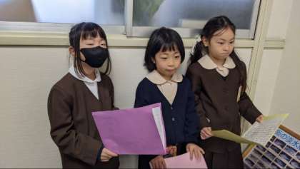2年生の代表児童が、2学期に頑張ったことや3学期に頑張りたいことを話していました。