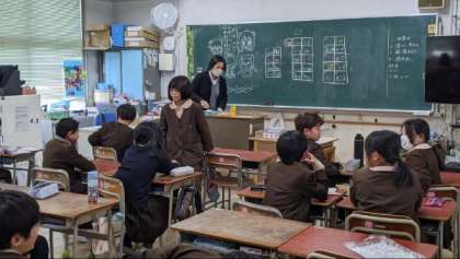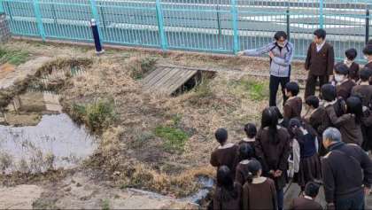 理科「冬の生き物」ビオトープに観察にいって、気づいたことを話し合っていました。